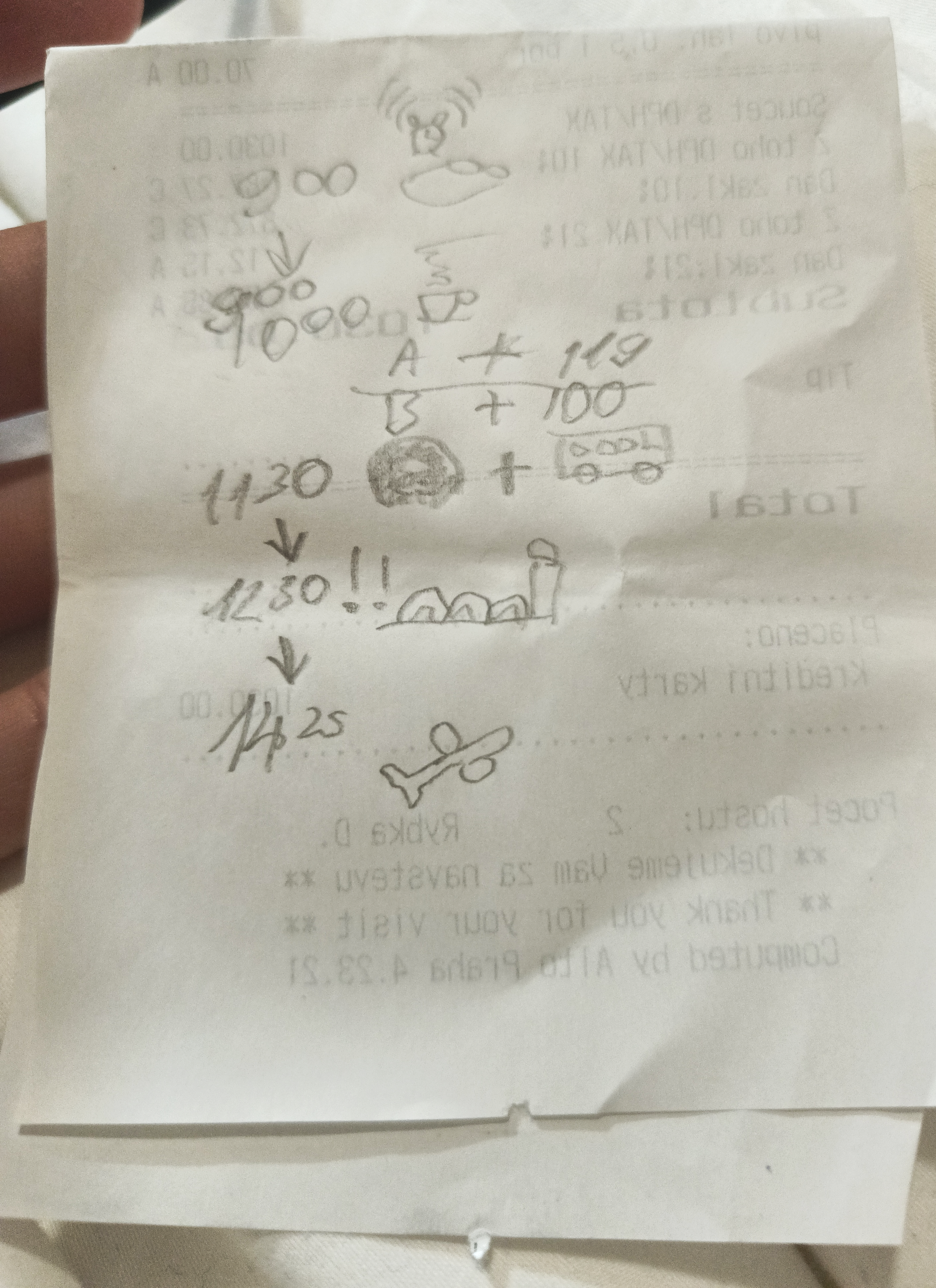 Mājupceļā mēs mēģinam nopirkt vīnu. Mums neiet ar normālu pārtikas veikalu atrašanu, visur ir tikai suvenīru bodes. Pie trešās bodes es padodos, ka laikam Rulandské Šedé (citur pazīstams arī kā Pinot Gris, diezgan droša izvēle, ka man garšos) neatradīsim, un paņemu 2 citus čehu vīnu veidus. Mājās redzēs, kā nu garšos. Vakarā, krāmējot čemodānu, atklājas pilnīgi aizmirstā informācija, ka mums taču bija arī suvenīri no Brno, un krāmēšana izvēršas par varenu atjautības uzdevumu. Taču es to atrisinu. Un pudeles pat ir puslīdz adekvāti ietītas netīrās zeķēs. Bingam gan nākas ceļot J. rokasbagāžā. Pēc tam es mēģinu pierakstīt, kā mums gāja Prāgas pilī, un tas ievelkas, jo mums daudz gāja. J. mēģina mani pārliecināt, ka neesot viedi tik vēlu iet gulēt, bet es lieku cerības uz gulēšanu lidmašīnā. Vēl mēs mēģinām iztrādāt plānu, cikos mums rīt kur jābūt, lai nenokavētu lidmašīnu. Kādu brīdi notiek nogurušu cilvēku putrošanās, un tad J. paņem un uzzīmē uz čeka aizmugures PLĀNU, kā mēs to darīsim, bet es piegūglēju, kas ir labākais sabiedriskais transports. PLĀNS beigās bija šāds: